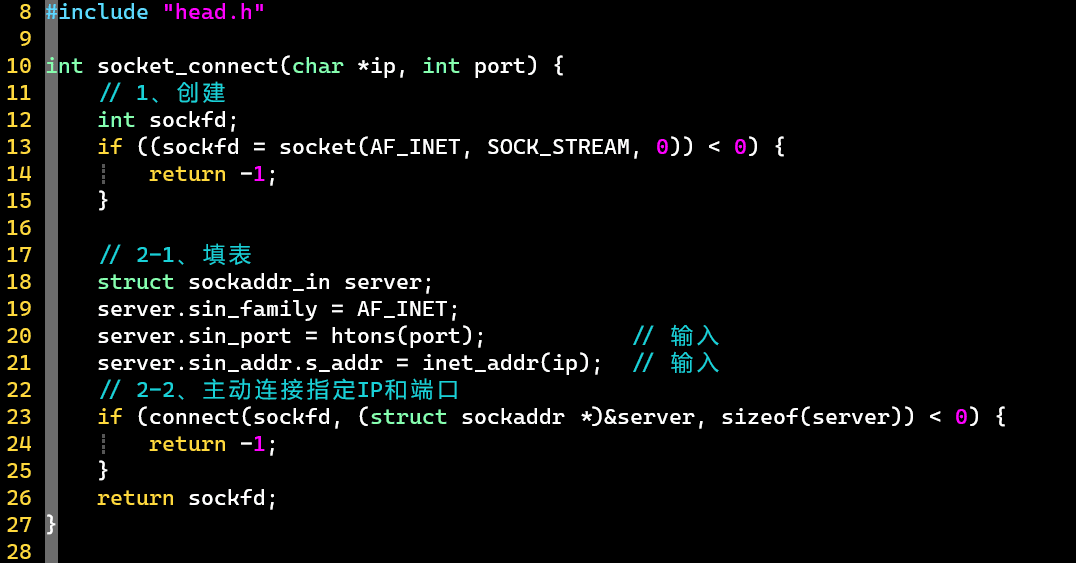 - sockaddr[_in]: Structure that saves socket information, use [_in] to fill in information, then convert to sockaddr
